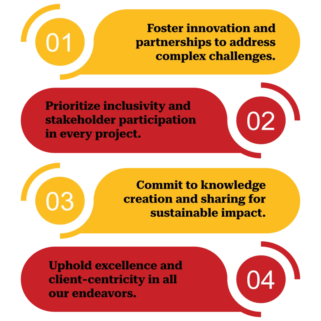 We embrace innovation, collaboration, inclusivity, and excellence to create sustainable solutions that drive positive change.
